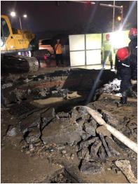 大雨不停地下,搶修工人挑燈夜戰(zhàn),一直到晚上23點左右,深埋地下四米的漏水管道終于被挖出。根據(jù)管道實際破損情況,搶修人員立即調(diào)整了搶修方案,爭分奪秒地連夜搶修,終于在18日上午十點搶修完畢,將現(xiàn)場淤泥鏟除清洗干凈并恢復(fù)供水。而奮戰(zhàn)了一整夜的師傅們,此時已在搶修車上睡著了,短暫的休息后,他們還要奔赴下一個工地。